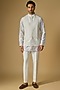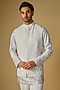 Featuring an ivory bundi jacket in silk chanderi base with threadwork and bead hand embellishments. Style it with a kurta set and mojaris for a festive occasion, cultural event, wedding or sangeet ceremony.