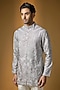 Featuring a silver grey kurta in silk chanderi base with embellishments. Style it with pants and kolhapuri sandals for a festive occasion, wedding or engagement ceremony.