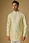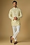 Featuring a yellow kurta in silk chanderi base with threadwork and bead hand embellishments. Style it with pants and mojaris for a festive occasion, cultural event, haldi, wedding or sangeet ceremony.