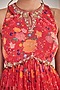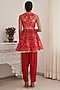 Featuring a red kurta in chiffon and chanderi base with cut sleeves, floral print and embroidery. It is paired with matching viscose crepe dhoti pants having lace border.