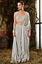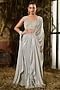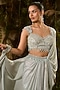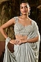 Featuring a blue draped saree in tulle and crinkle foil georgette base. It is paired with a sequins and crystal embroidered blouse. Accentuate it with dangler earrings and heels for a wedding or sangeet ceremony.