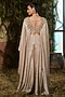 Featuring a gold top in crinkle foil georgette base with kaftan sleeves and embellishment. It is paired with sharara pants. Accentuate it with dangler earrings and heels for cocktail soirees.