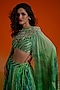 Featuring a green lehenga in georgette and modal satin base with floral print. It is paired with a blouse and a cape having crystal and pearl embroidery. Accentuate it with jewellery, embellished heels and a potli bag for a wedding ceremony or festive occasions.