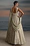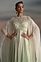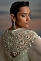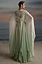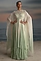 Featuring an ivory and mint layered anarkali in chiffon and georgette base with stone embroidery and an attached cape. Accentuate with polki jewellery and heels for a sangeet or engagement ceremony.