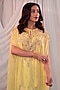 Featuring a lemon yellow high-low kaftan in mukaish georgette base with embellishment. It is paired with dhoti pants and a crepe inner. Accentuate it with statement jewellery and heels for a haldi ceremony or festive occasion.