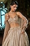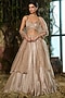 Featuring a metallic gold lehenga in crinkle foil georgette base with sequins embroidery. It is paired with a blouse and an organza dupatta. Accentuate it with dangler earrings and heels for a wedding or sangeet ceremony.