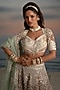 Featuring an old rose lehenga in organza and dupion base with swarovski, crystals and sequins embroidery. It is paired with an ivory embroidered blouse and a mint green dupatta. Accentuate with polki jewellery and heels for a perfect bridal look.