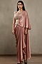 Featuring an old rose concept saree in shimmer satin base with crystals and cutdana embroidery. It is paired with an embroidered blouse. Accentuate with statement jewellery and heels for a festive occasion, sangeet or cocktail ceremony.