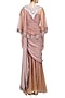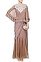 Featuring an old rose single piece concept saree in tulle and georgette base with fluted bodice. It is paired with an embroidered cape.