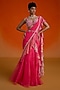 Featuring a pink concept saree in georgette and organza base with ombre jamawar print. It is paired with a blouse and a belt having mirror, resham and bead embellishments. Accentuate it with jewellery, embellished heels and a potli bag for a wedding ceremony or festive occasions.