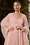 Featuring a pink anarkali in georgette base with sequins and crystal work. It is paired with pants and an organza dupatta. Accentuate it with dangler earrings and block heels for festive occasions or weddings.