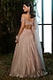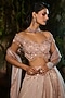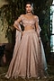 Featuring a rose pink lehenga in tulle and crinkle foil georgette base. It is paired with a crystal and sequins embroidered blouse and an organza dupatta. Accentuate it with dangler earrings and heels for a wedding or sangeet ceremony.