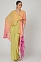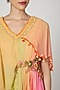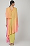Featuring a yellow and pink asymmetric draped kurta in flat chiffon and crepe base with digital print including resham and stone floral embellished motifs. It is paired with matching draped pants.