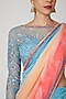 Featuring a blue and pink fish style draped saree in georgette and flat chiffon base with digital print, including resham and sequins embroidery. It is paired with a blouse. Accentuate it with statement jewellery and heels for a wedding, engagement or sangeet ceremony.