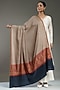 Featuring a brown and blue shawl in cashmere base with needle embroidery. Drape it loosely over a solid kurta, dress, or winter coat to let the color stand out. Style with neutral layers and minimal accessories for brunches, office wear or cozy winter outings.