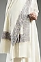 Featuring an ivory shawl in cashmere base with floral motifs detail and needle embroidery. Drape it loosely over a solid kurta, dress, or winter coat to let the color stand out. Style with neutral layers and minimal accessories for brunches, office wear or cozy winter outings.