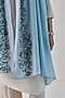 Featuring a pastel blue stole in pashmina base with floral machine embroidery. This versatile stole complements any outfit, making it a must-have travel accessory for all seasons.