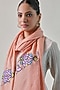 Featuring a peach stole in pashmina base with floral machine embroidery. This versatile stole complements any outfit, making it a must-have travel accessory for all seasons.