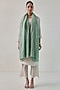 Featuring a sage green shawl in cashmere base. This versatile shawl complements any outfit, making it a must-have travel accessory for all seasons.