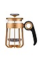 Featuring a set of three gold coffee makers crafted from borosilicate glass, stainless steel, and aluminum. The French Press Coffee Maker features a temperature indicator, ergonomic handle, thumb grip, and anodized frame. This set includes lid with temperature gaguge, aluminum fins and kettle bottle.