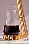 Featuring a set of six gold coffee maker crafted from borosilicate glass, stainless steel, and aluminum. The Caffeinator is futuristic, featuring a metal filter that retains coffee oils, a rounded scoop for measuring and pressing grinds evenly, a pot for collecting fresh coffee, and a coaster to prevent spill-overs. This set includes one stand, one glass, one funnel, one filter, one dish and one spoon.