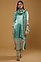 Featuring a mint and silver kurta in zari tissue base with cut work embroidery. It is paired with matching pants and a dupatta.
