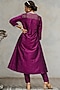 Featuring a purple asymmetrical kurta in dupion silk base with zardosi embroidery. It is paired with a matching cotton slip and pants.