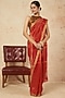Featuring a red saree in silk cotton and handloom silk base with gold zari fine stripes and a running blouse piece. This contains one piece only.