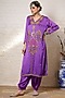 Purple Silk Paisley Motif Embroidered Kurta Set