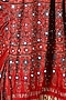 Featuring a red saree in silk base with sheeshakari, gold beads and resham handwork. It is paired with an embroidered unstitched blouse. Accentuate it with diamond jewellery and heels for a bridal, engagement or a reception look.