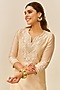 Beige Chanderi Silk Parsi Gara Embroidered A-Line Short Kurta Set