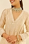 Beige Chanderi Silk Parsi Gara Embroidered Short Kalidar Anarkali Set