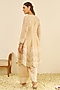 Sheetal Batra presents a beige short kalidar anarkali in chanderi silk base with a broad deep v-neckline and parsi gara embroidery. It is paired with bemberg satin dogri salwar pants and a silk organza scalloped dupatta. Accentuate with statement earrings and heels for a festive occasion, engagement or sangeet ceremony.