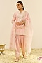 Sheetal Batra presents a blush pink A-line short kurta in chanderi silk base with a zero-neckline and parsi gara embroidery. It is paired with bemberg satin dogri salwar pants and a silk organza dupatta. Accentuate with statement earrings and heels for a festive occasion, engagement or sangeet ceremony.