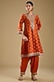 Burnt Orange Pure Silk Chanderi Banarasi Sequin Embroidered Kurta Set