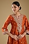 Featuring a burnt orange kurta in pure silk chanderi banarasi base with kashmiri tilla, pearls, sequins and gota patti embroidery, including a zero neckline and bell sleeves. It is paired with dogri salwar pants. Accentuate it with dangler earrings and heels for festive occasions or pooja ceremonies.