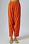 Featuring a burnt orange long kaftan in pure silk base with a v-neckline, sitara and kiran dori embroidery. It is paired with dogri salwar pants. The outfit is finished with contrast banarsi fabric and kinari. Style it with dangler earrings and juttis for festive occasions or sangeet ceremonies.