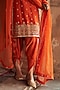 Sheetal Batra presents a mesmerizing burnt orange short kurta in pure silk chanderi banarasi base with bell sleeves, pearl, sequins, kashmiri tilla and gota patti embroidery. It is paired with bamberg satin dhoti pants. Elevate the look with polki earrings, a braided hairstyle and wedges, ideal for sangeet ceremonies or colorful festive gatherings.