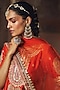 Sheetal Batra presents a mesmerizing burnt orange kurta in silk chanderi and pure banarasi base with pearl, sequins, kashmiri tilla and gota patti embroidery. It is paired with sharara pants having boota embroidery and an embroidered silk organza dupatta. Elevate the look with uncut kundan chandbalis, a neatly braided bun wrapped in mogra, and embroidered block heels, perfect for sangeet ceremonies steeped in tradition.