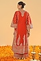 Sheetal Batra features a burnt orange A-line kurta in silk chanderi base with a zero-neckline, bell-sleeves, dabka, and zardozi embroidery. It is paired with palazzo pants and a silk organza dupatta. Accentuate with polki jewellery and heels for any festive occasion to ace the royal look.