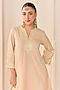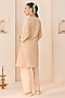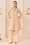 Sheetal Batra features a carnation pink short kurta in chanderi silk brasso base with functional pockets, mirror and aari embroidery. It is paired with glazed cotton dogri salwar with an embroidered border. Style it with statement jhumkas, a potli bag, and embellished juttis, complemented with soft waves and dewy makeup for festive celebrations or easy daytime outings.