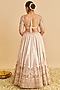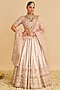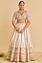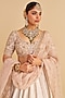 Sheetal Batra presents a daisy ivory and blush pink lehenga in pure raw silk base with dabka, pearl and zardosi embroidery. It is paired with an embroidered blouse having a sweetheart neckline and deep-cut back, including a silk organza dupatta with embroidered borders. Accentuate it with kundan polki jewellery, embellished heels and a potli bag for a complete look, perfect wear for a wedding, sangeet or engagement ceremony.