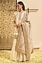 Sheetal Batra features a daisy ivory kurta in pure silk chanderi base with gota patti embellishment and dabka zardosi embroidery. It is paired with gharara pants and a silk organza dupatta. Accentuate it with statement jewellery and heels for a festive look or engagement ceremony.