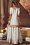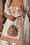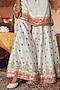 Sheetal Batra presents a mesmerizing daisy ivory kurta in silk chanderi and pure banarasi base with pearl, sequins, kashmiri tilla and gota patti embroidery. It is paired with sharara pants having boota embroidery and an embroidered silk organza dupatta. Elevate the look with uncut kundan chandbalis, a neatly braided bun wrapped in mogra, and embroidered block heels, perfect for engagement ceremonies steeped in tradition.