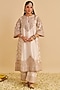 Sheetal Batra presents a daisy ivory choga kurta in silk chanderi base with dabka and zardozi hand embroidery. It is paired with palazzo pants. Accentuate it with chandbali earrings, embellished heels and a potli bag for a complete look, perfect wear for a festive, pooja or sangeet ceremony.,