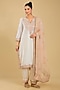 Featuring a daisy ivory kurta in silk chanderi base, adorned with embroidery. It is paired with bamberg satin pants and a silk organza dupatta. Style it with polki jewellery, an embellished clutch and heels for a wedding or engagement ceremony.