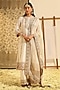 Sheetal Batra features a daisy ivory A-line kurta in pure silk chanderi base with gota patti embellishment and dabka zardosi embroidery. It is paired with palazzo pants and a silk organza dupatta. Accentuate it with statement jewellery and heels for a festive look or engagement ceremony.