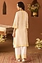 Sheetal Batra presents a daisy ivory A-line kurta crafted in silk chanderi, adorned with delicate lemon yellow parsi gara, sequins, and pearl embroidery. It is paired with glazed cotton dogri salwar pants and a silk organza dupatta, creating a light and festive silhouette. Style it with kundan polki jewellery, a potli bag, and block heels for sangeet, or celebratory occasions.