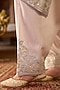 Sheetal Batra presents a daisy ivory A-line kurta crafted in silk chanderi, adorned with delicate blue parsi gara, sequins, and pearl embroidery. It is paired with glazed cotton dogri salwar pants and a silk organza dupatta, creating a light and festive silhouette. Style it with kundan polki jewellery, a potli bag, and block heels for sangeet, or celebratory occasions.