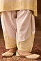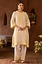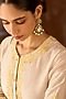 Sheetal Batra presents a daisy ivory A-line kurta crafted in silk chanderi, adorned with delicate lemon yellow parsi gara, sequins, and pearl embroidery. It is paired with glazed cotton dogri salwar pants and a silk organza dupatta, creating a light and festive silhouette. Style it with kundan polki jewellery, a potli bag, and block heels for sangeet, or celebratory occasions.